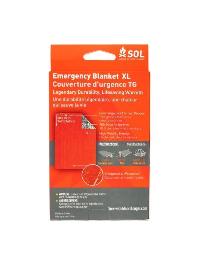 • SOL survival blanket is easy to open and fold in cold weather; folded flat, it's easy to pack