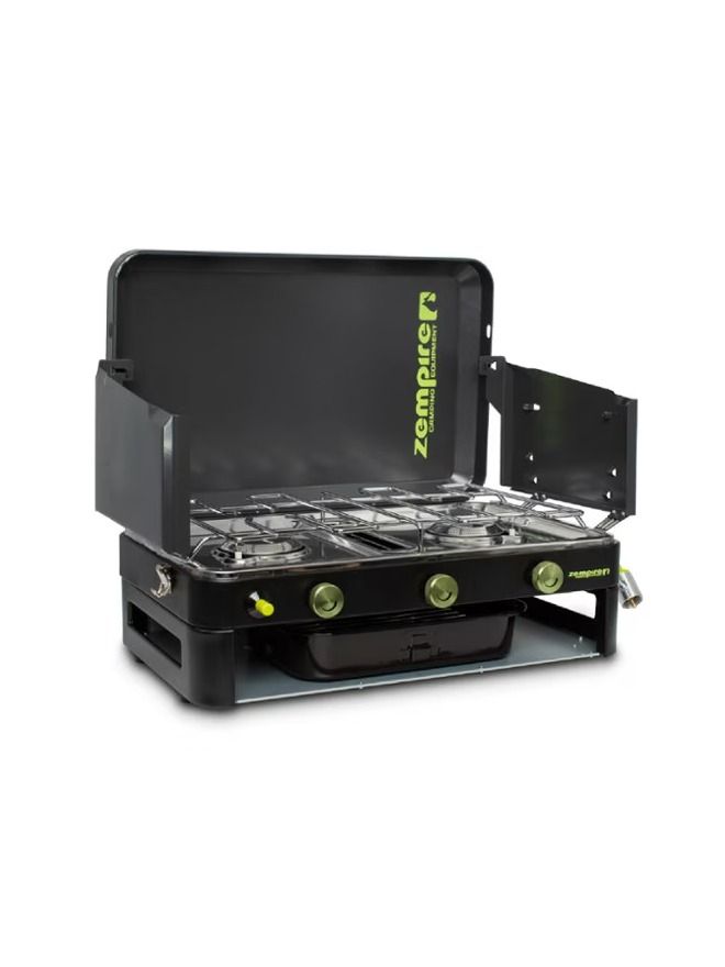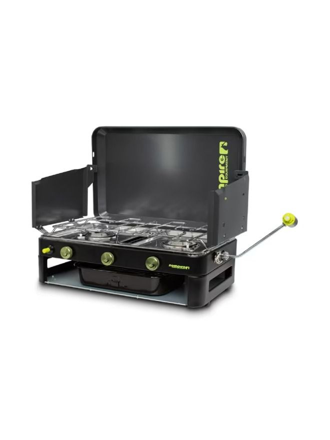 • Powerful lower grill (4,500 BTU) allows campers to toast and grill food while still using the upper burners