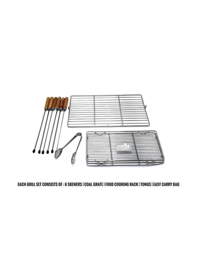 Accessories Included : Top Food Grate, Charcoal Grate, High Quality Bag, Tong & 6 Skewers