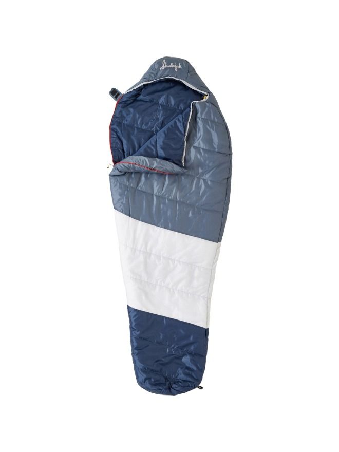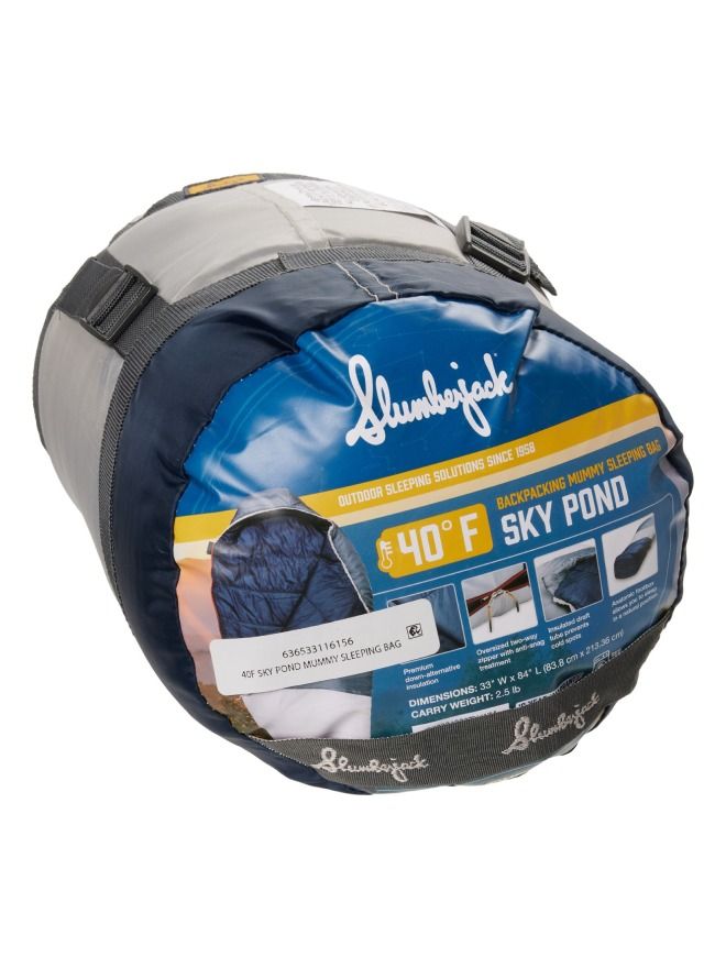 • Get a good night's sleep on the trail with Slumberjack's Sky Pond backpacking sleeping bag, designed with a contoured hood to keep in the heat, an anatomically designed footbox to give feet some room and toasty synthetic insulation for just-right warmth.